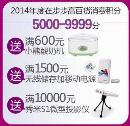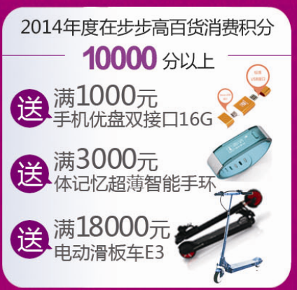 土豪服务:在步步高百货消费满5千积分的顾客,将由步步高员工进行一对一派送。