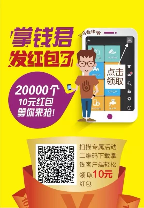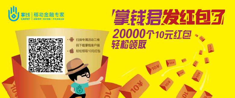 扫一扫掌钱专属二维码,下载激活掌钱后,充值任意金额即可获得系统自动发放的掌钱现金红包10元。